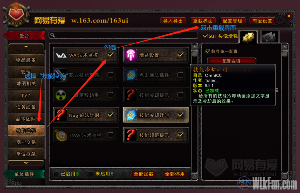 其中 网易有爱 和 178大脚 ,自带WA插件在有游戏里的设置中心找到wa插件,打开就可以了。